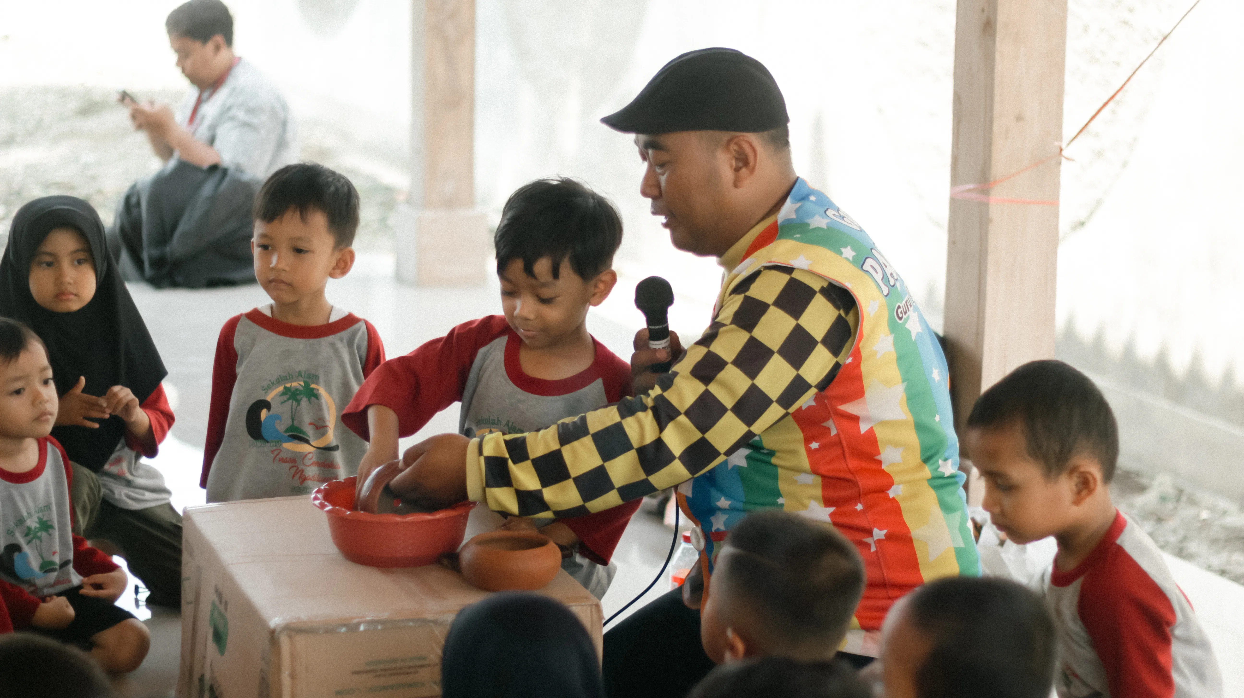Suasana kegiatan berlangsung hangat dan penuh semangat. Anak-anak tampak antusias mengikuti berbagai aktivitas seru, mulai dari menghias gerabah, belajar bahasa Kromo Inggil, hingga sesi parenting khusus untuk orang tua. Konsep pembelajaran yang kreatif ini menghadirkan pengalaman baru yang menyenangkan, berbeda dari kegiatan Safari Berkisah yang selama ini lebih sering diadakan.