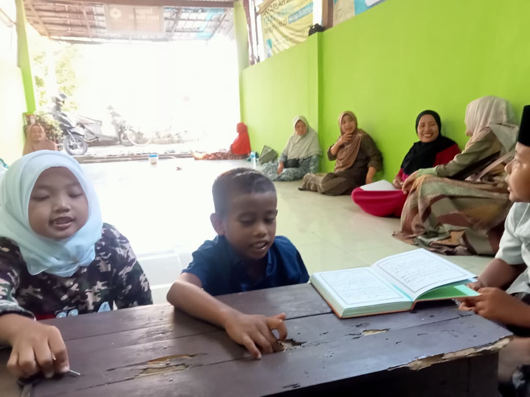 Anak-anak tidak hanya diajak menyalin kata atau mengerjakan soal, tetapi juga dilibatkan dalam permainan edukatif seperti kuis, cerita pendek, hingga diskusi kelompok. Dengan pendekatan interaktif ini, suasana belajar terasa hangat, menyenangkan, dan penuh motivasi.