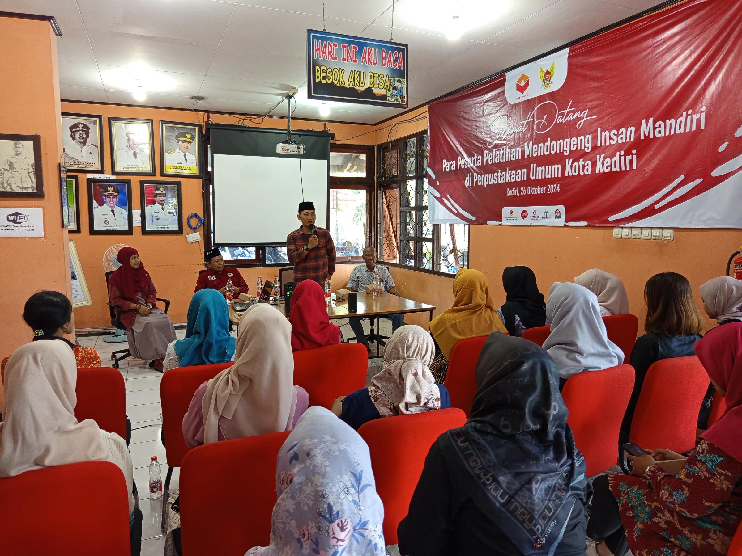 INSAN MANDIRI – Kota Kediri semakin semarak dengan kegiatan literasi. Buktinya, pelatihan mendongeng yang diselenggarakan oleh Insan Mandiri Kediri bekerja sama dengan Dinas Kearsipan dan Perpustakaan Kota Kediri berlangsung dengan sukses. Kegiatan yang berlangsung di Perpustakaan Umum Kota Kediri ini diikuti oleh 19 peserta dari berbagai kalangan, mulai dari guru TK/RA/PAUD, guru SD/MI, hingga mahasiswa dan seniman.