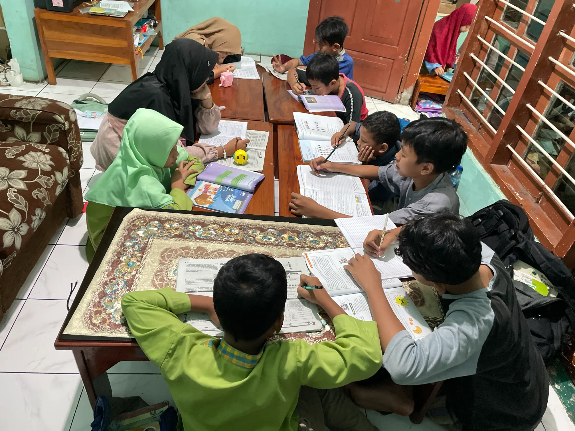 Setiap kegiatan di sanggar diawali dengan pembacaan surah-surah pendek seperti Al-Fatihah, Al-‘Asr, dan Yasin, menciptakan suasana sakral dan penuh harap akan kelancaran proses belajar. Anak-anak tak hanya diajak memahami materi pelajaran, namun juga dibimbing untuk menumbuhkan kecintaan mereka terhadap Al-Qur’an melalui kegiatan menulis dan membaca ayat suci sesuai pencapaian masing-masing.