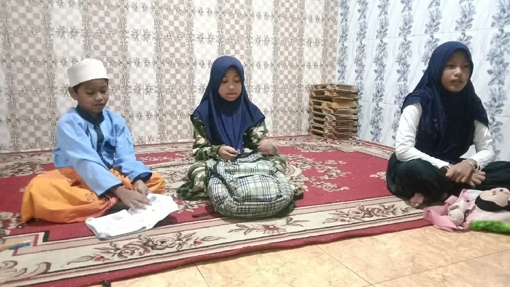 Sebanyak 7 anak hadir dalam kegiatan yang diawali dengan tawassul, murajaah surat pendek, dan dilanjutkan dengan mengaji sesuai tingkatan.