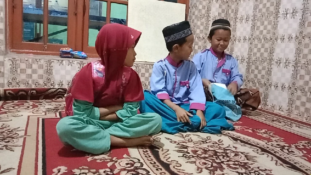 Meski hujan dan angin kencang, 3 anak tetap semangat datang ke sanggar untuk belajar.