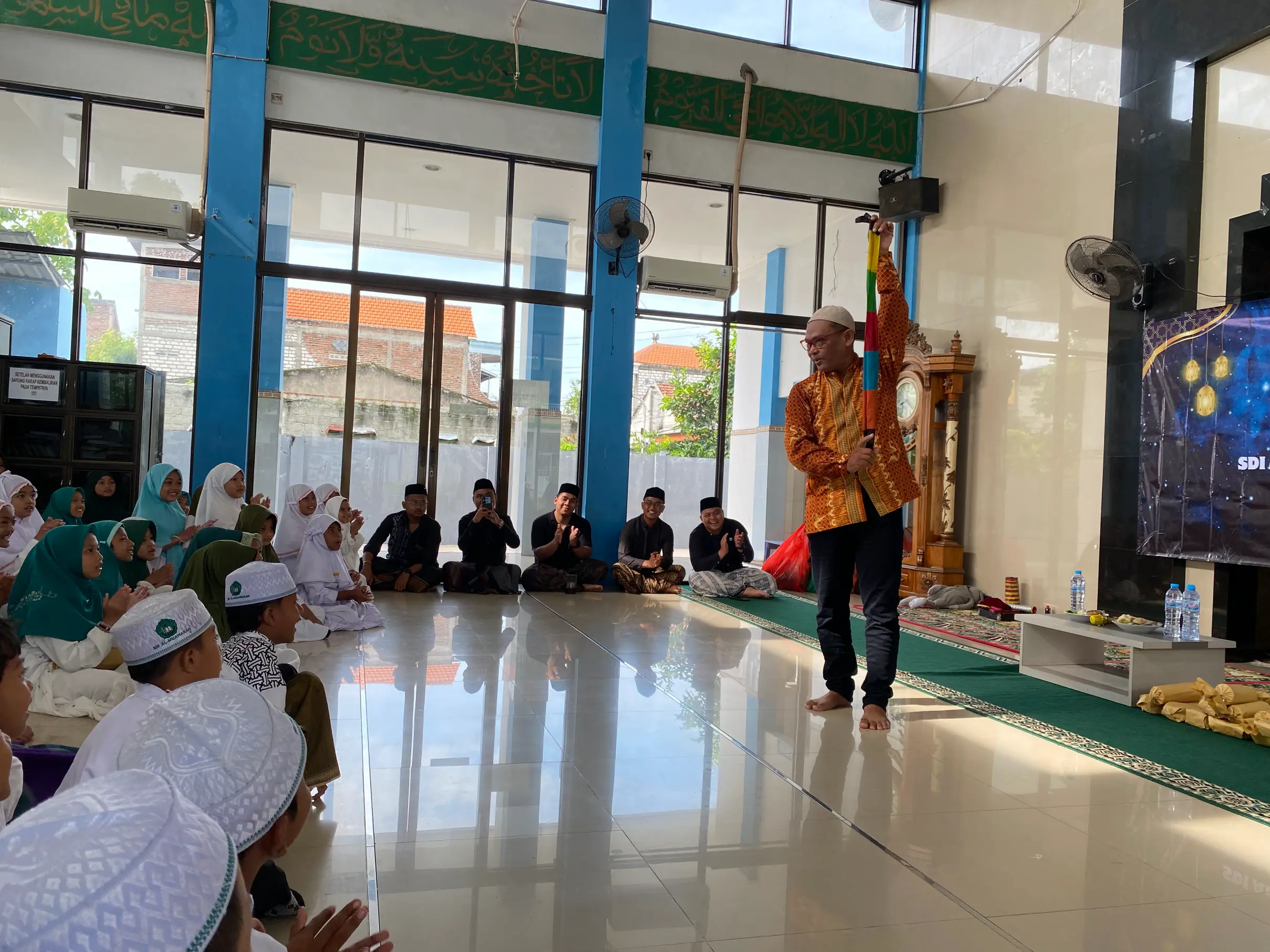 Tidak hanya mendengarkan dongeng, para siswa juga diajak berpartisipasi aktif melalui kuis interaktif berhadiah. Anak-anak dengan penuh semangat mengangkat tangan dan berlomba menjawab pertanyaan, menciptakan suasana belajar yang menyenangkan sekaligus melatih keberanian dan kepercayaan diri. Kegiatan Insan Berkisah ini kemudian ditutup dengan aksi sulap yang menghibur dan spektakuler, menghadirkan tawa, kekaguman, dan kebahagiaan bagi seluruh peserta.