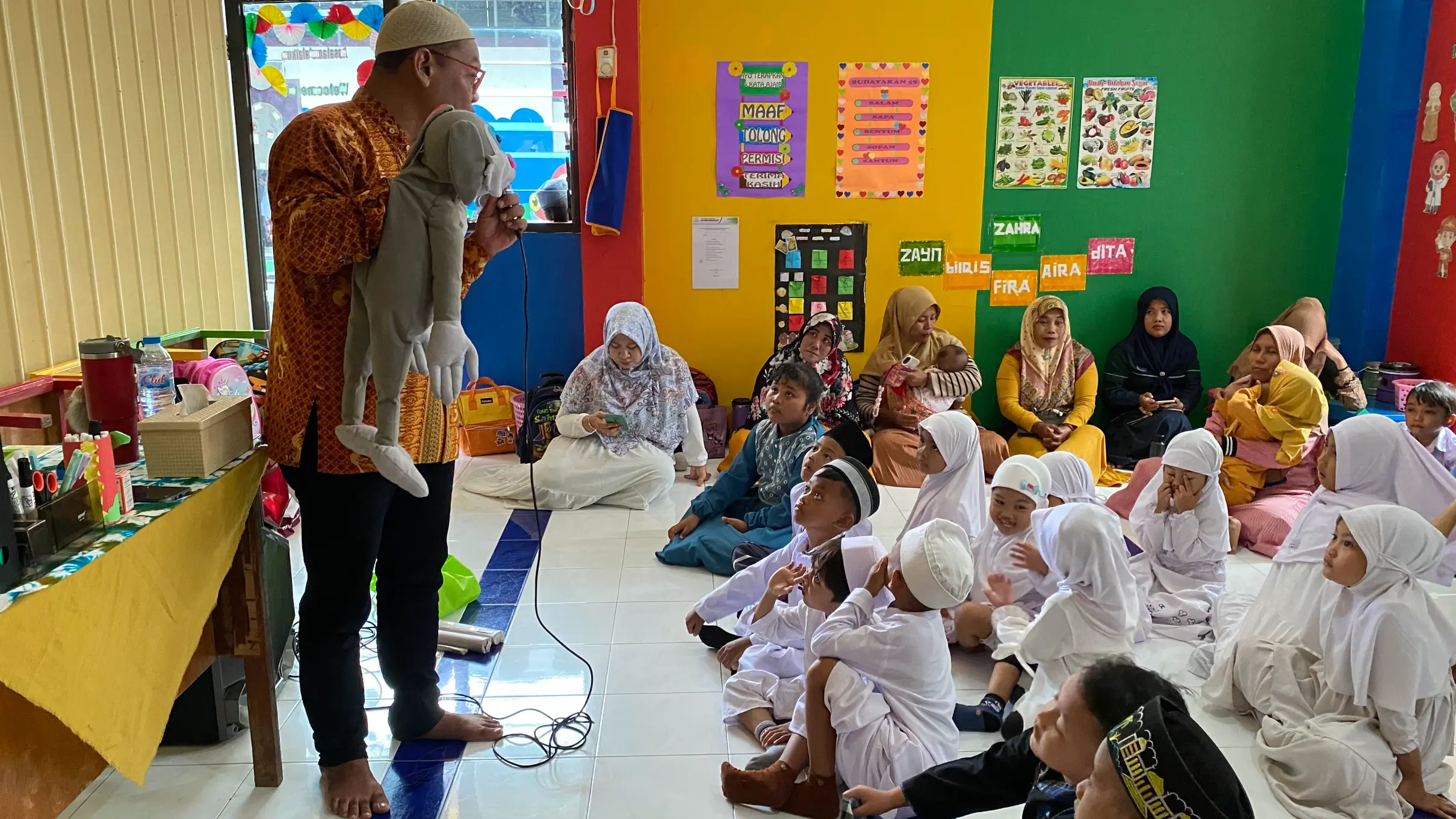 Dalam sesi dongeng, kisah Isra’ Mi’raj disampaikan dengan bahasa yang ringan, ekspresif, dan komunikatif. Anak-anak tampak sangat excited dan fokus menyimak cerita, sekaligus diajak memahami makna pentingnya salat sebagai tiang agama serta keteladanan Rasulullah SAW dalam kehidupan sehari-hari. Penyampaian cerita dikemas secara interaktif agar pesan keimanan dapat tersampaikan dengan baik dan berkesan.