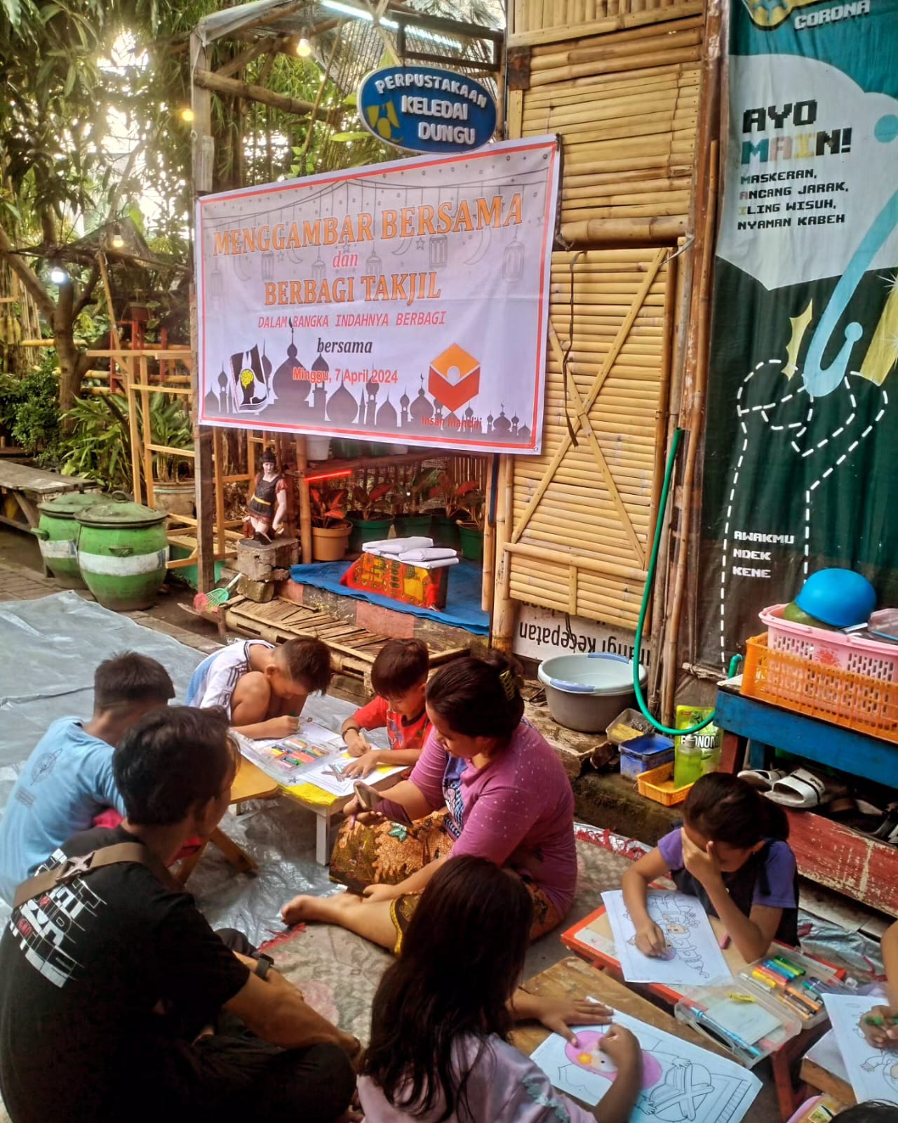 INSAN MANDIRI - Suasana kehangatan dan keceriaan menyelimuti Perpustakaan Keledai Dungu di Jl. Karang Tembok, Surabaya, saat Insan Mandiri dan Perpustakaan Keledai Dungu berkolaborasi dalam kegiatan berbagi takjil dan perlombaan untuk warga sekitar. Acara yang dihadiri oleh para warga sekitar ini menjadi momen yang berkesan dan penuh makna di tengah bulan Ramadan yang penuh berkah.
