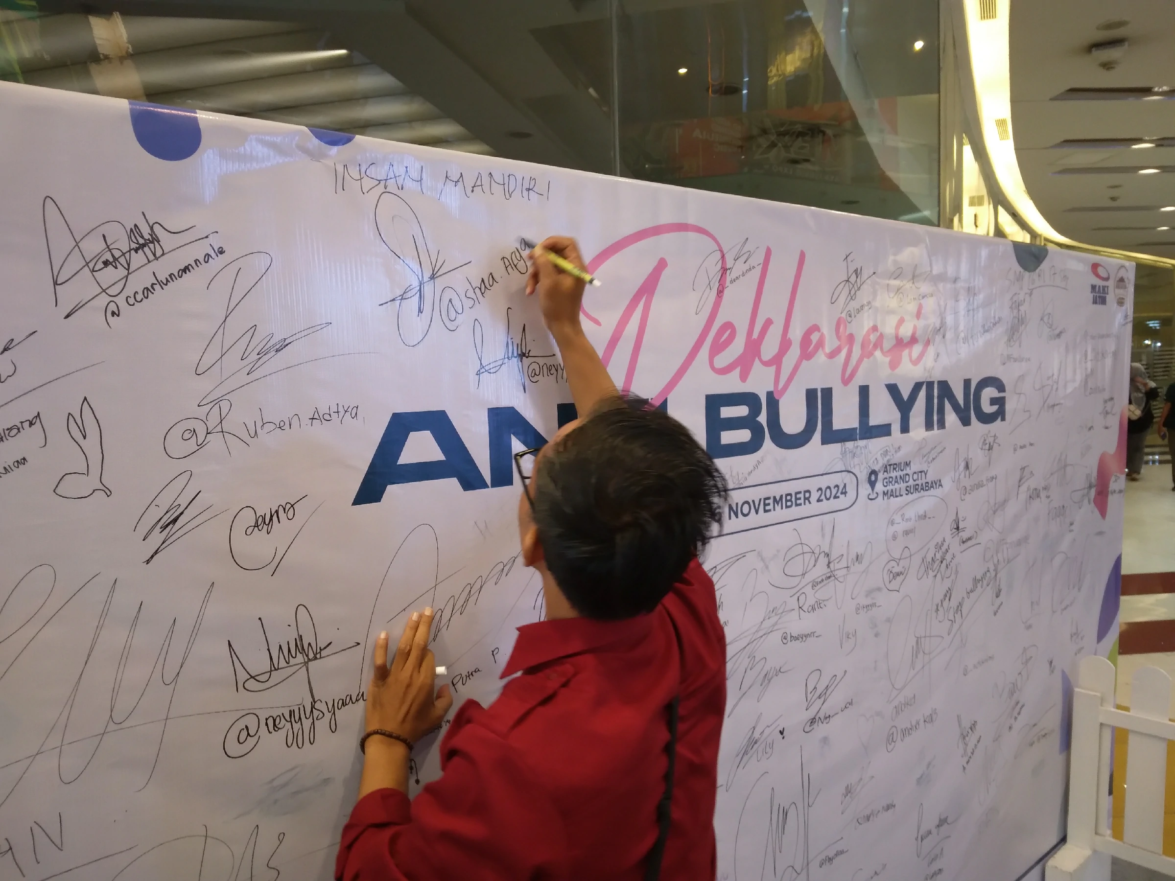INSAN MANDIRI – Pada hari terakhir Pameran JEEF di Grand City Mall, Surabaya, Insan Mandiri turut serta memeriahkan acara Deklarasi Anti Bullying yang diadakan oleh LSM Masyarakat Anti Korupsi Indonesia (MAKI) Jawa Timur. Acara ini bekerja sama dengan Pemerintah Provinsi Jawa Timur dan didukung oleh 30 Organisasi Perangkat Daerah (OPD), dengan tujuan membangun kesadaran anti-bullying di kalangan pelajar, mulai dari jenjang PAUD, TK, hingga SMA, serta masyarakat umum, terutama kaum perempuan.