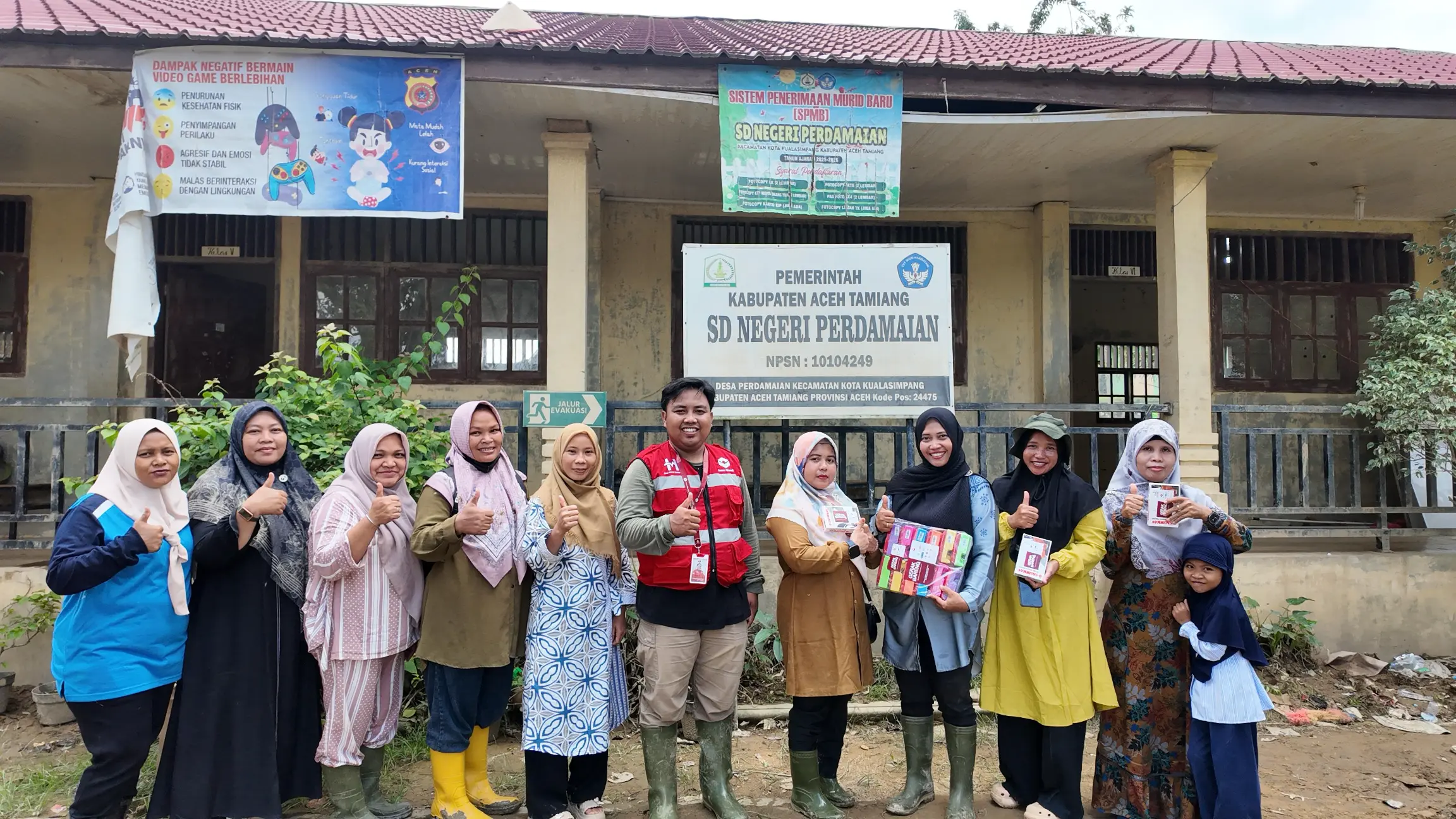 Adapun bantuan yang disalurkan berupa 6 unit papan tulis, 1 pack penghapus papan tulis, serta spidol sebanyak 3 lusin. Seluruh bantuan tersebut diserahkan secara langsung kepada pihak sekolah dan diterima secara simbolis oleh Ibu Siti Hawa, S.Pd., guru kelas 5, dan Ibu Nuraiza, S.Pd., guru kelas 6, sebagai perwakilan dari SDN Perdamaian.